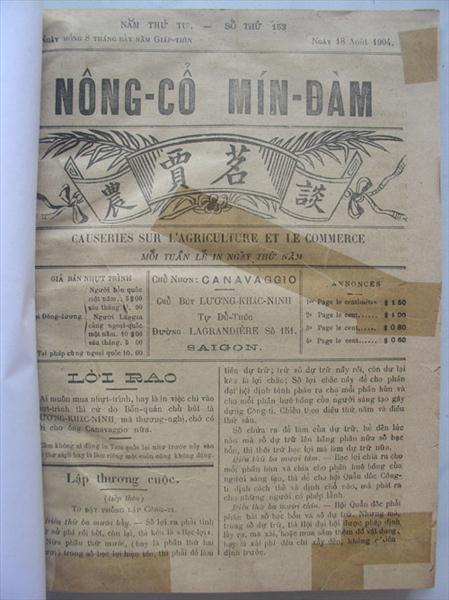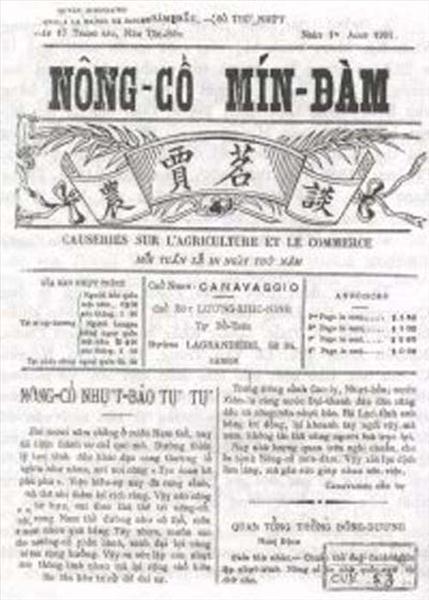 Tờ báo kinh tế đầu tiên trong lịch sử báo chí Việt Nam là tờ Nông Cổ Mín Đàm nghĩa là “uống trà bàn chuyện làm ruộng và đi buôn”. Đây là tờ báo tiếng Việt do Paul Canavaggio – một chủ đồn điền và thương gia người đảo Corsica, hội viên Hội đồng Thuộc địa Nam Kỳ làm chủ nhiệm. Chủ bút lần lượt là các ký giả Dũ Thúc Lương Khắc Ninh, Gilbert Trần Chánh Chiếu, Nguyễn Chánh Sắt…