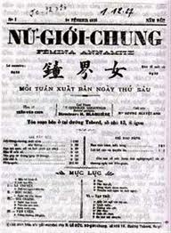 Báo Nữ Giới Chung (tiếng chuông của nữ giới) xuất bản vào thứ Sáu hàng tuần tại Sài Gòn trong năm 1918. Đây là tờ báo đầu tiên chuyên về phụ nữ, với chủ trương nâng cao dân trí, khuyến khích công nông thương và nhất là đề cao vai trò phụ nữ trong xã hội. Tầm ảnh hưởng của tờ báo này khiến mật thám Pháp e ngại. Tháng 7/1918, tờ Nữ Giới Chung bị đình bản.