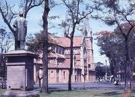 Tượng Trương Vĩnh Ký được đặt gần Nhà thờ Đức Bà, Sài Gòn, trước năm 1975 |